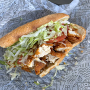 With Publix Lemon Pepper Turkey, cheese, condiments, and toppings.